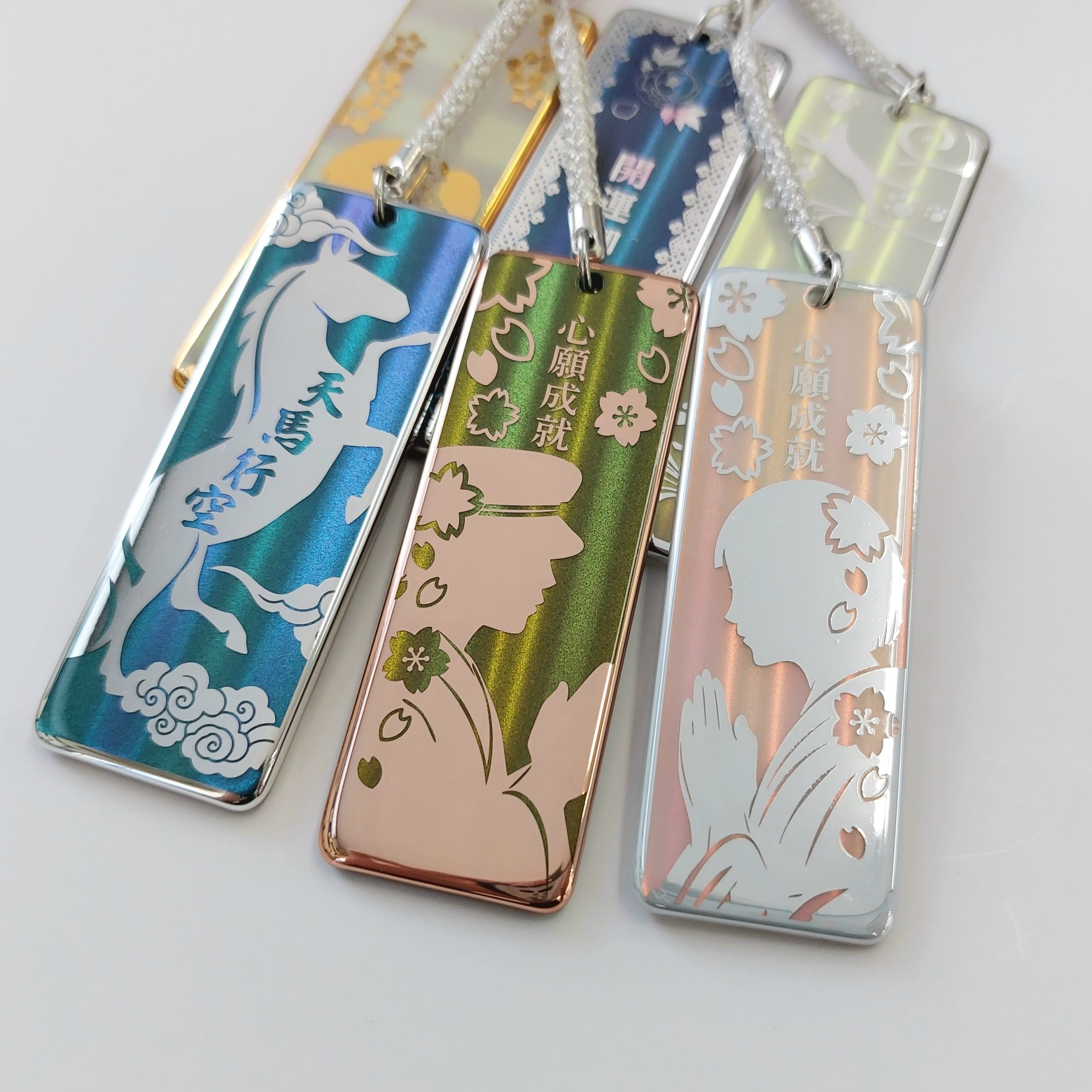 ポリエステル樹脂を使用したお守りです。他にはない深みのある色と上品なパール感が特徴で高級感があるとご好評をいただいております。デザイン性を求められるボタン作りで培ってきた熟練の技術と経験を活かし、流行りものとは一味違った繊細で洗練された製品をご提案しています。